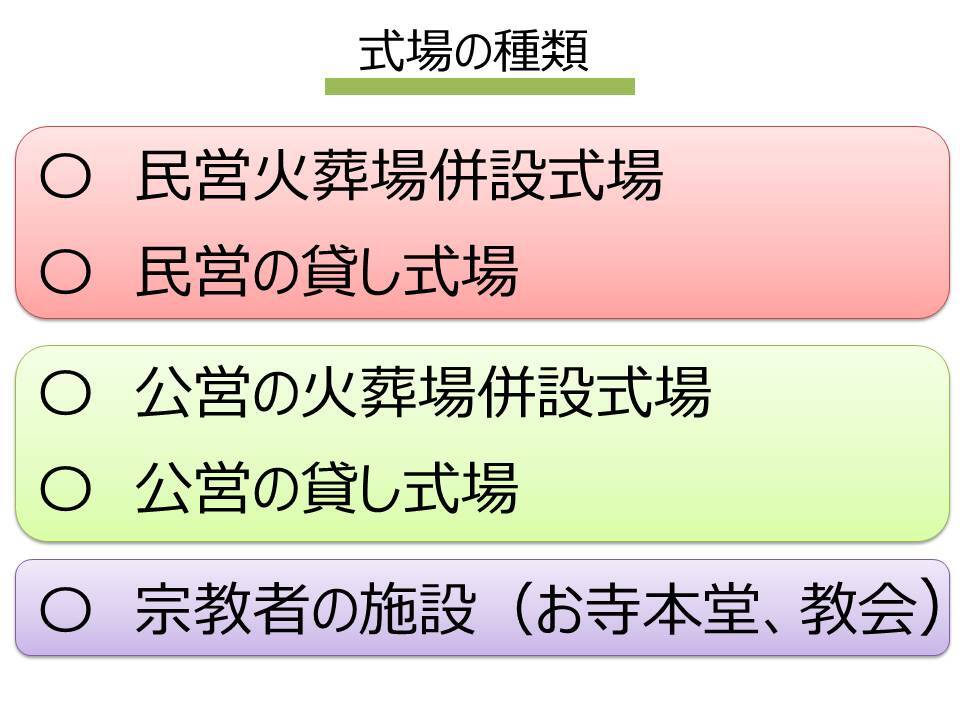 そのなかでさらに式場だけなのか、火葬場も併設している式場に分かれます。火葬場併設斎場、東京でいいますと桐ケ谷斎場、代々幡斎場、落合斎場、町屋斎場などが有名です。よく公共の施設と思われている方もいますが、こちらは民間の施設です。火葬場もあり、式場もあります。同じ施設内なので移動の負担も少なく、霊柩車やマイクロバスに乗る必要が基本的にありません。そうしたことから利便性も高く人気の施設です。(※落合斎場などは式場や火葬場の建物が道を一本隔てたりしていて霊柩車に乗る施設もあります)