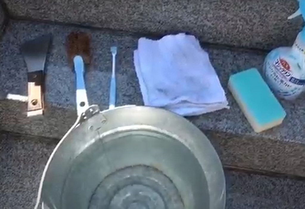 ・お風呂用洗剤・歯ブラシ(なるべくヘッドが小さいもの)・鉄製のヘラ・スポンジ・ブラシ・タオル・ハサミ(お花の茎を切り揃える用)・お花束・線香などのお供え物