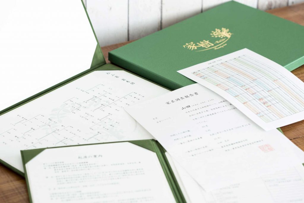 <戸籍から作成する家系図>お客様の明治時代までの戸籍を代行取得し、技術者が読み解くことによって、戸籍の情報から豪華な家系図セットを制作・お届けする定番サービスです。豪華な「本格家系図セット」と、実用的な「シンプル家系図セット」の2つから基本セットをご選択いただけます。戸籍は永久に保存され続けるとは限りません。いつか廃棄されてしまう前に、一家の宝物として家系図を作ってみませんか?ご両親へのプレゼントや記念日のギフトなど、贈り物としても最適です。